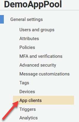 On the next screen, click on Add an app client.