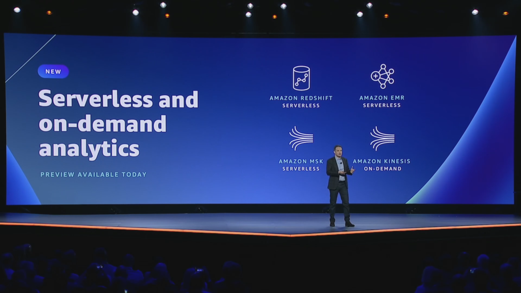 Also in the data and analytics space is a new serverless announcement. Adam announced new serverless modes for popular analytics services including Redshift, EMR, MSK, and Kinesis.