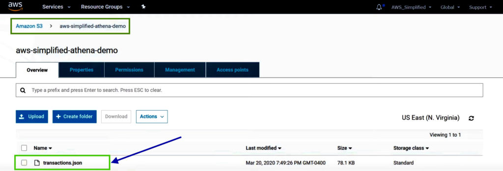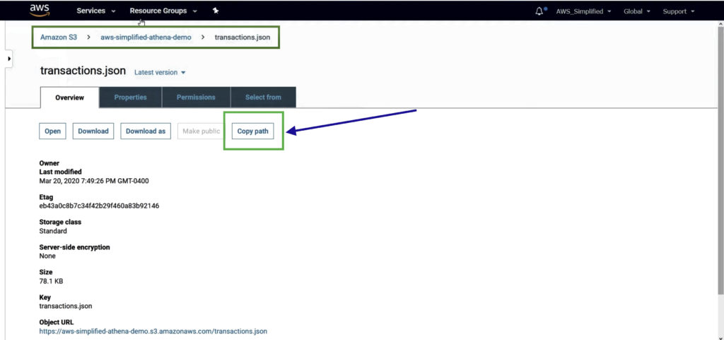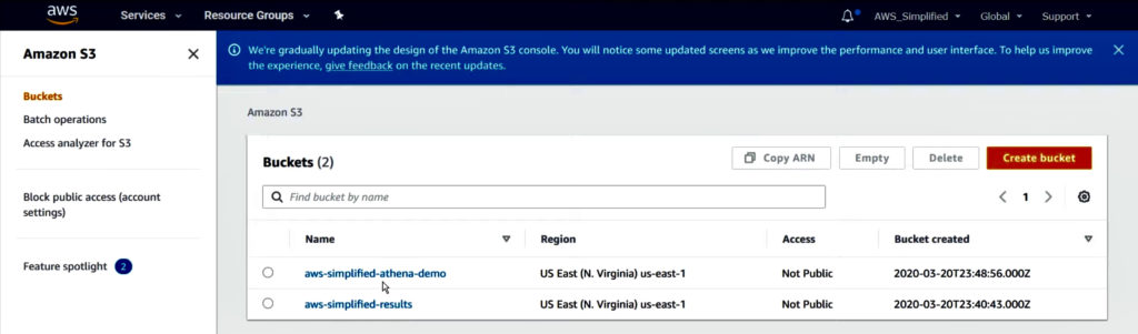 S3 bucket “aws-simplified-athena-demo” contains source data I want to query.